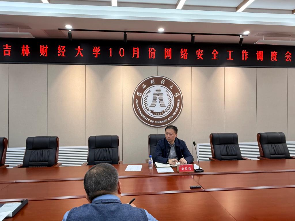 2025年10月28日上午,我校召开吉林财经大学2025年10月份网络安全工作调度会,学校副校长庞长亮,信息管理中心主任张健鹏及学校安全委员会办公室其他成员单位的负责人、各二级党组织负责人参加会议。学校副校长庞长亮主持会议。