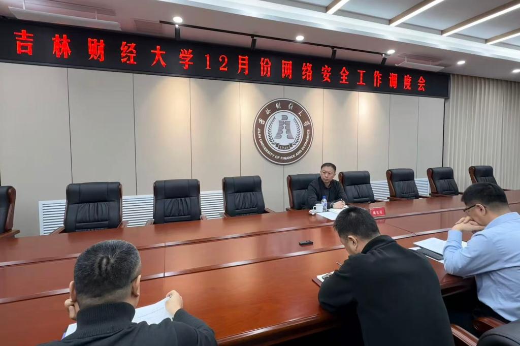 2025年12月30日上午,我校召开吉林财经大学2025年12月份网络安全工作调度会,学校副校长庞长亮,信息管理中心主任张健鹏及学校安全委员会办公室其他成员单位的负责人、各二级党组织负责人参加会议。学校副校长庞长亮主持会议。